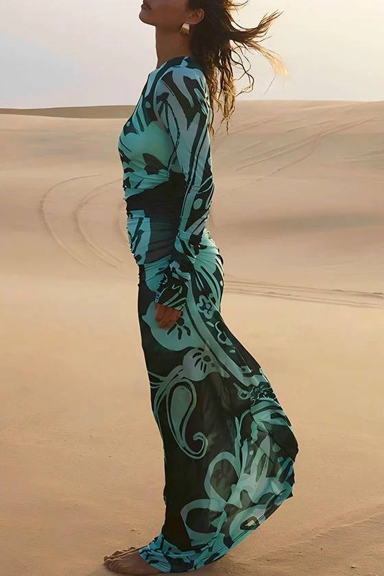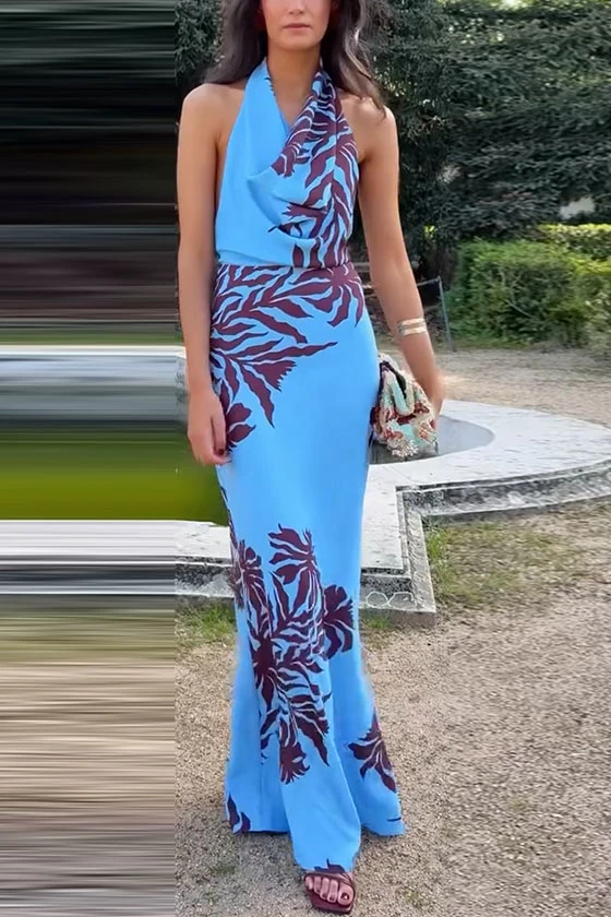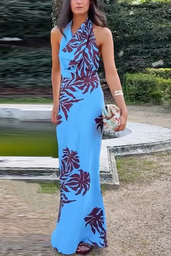 Halter Neck Printed Sleeveless Dress