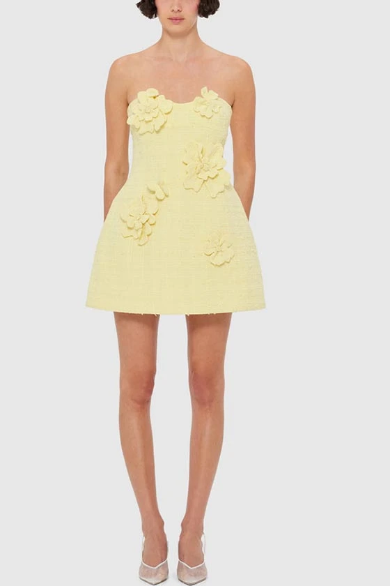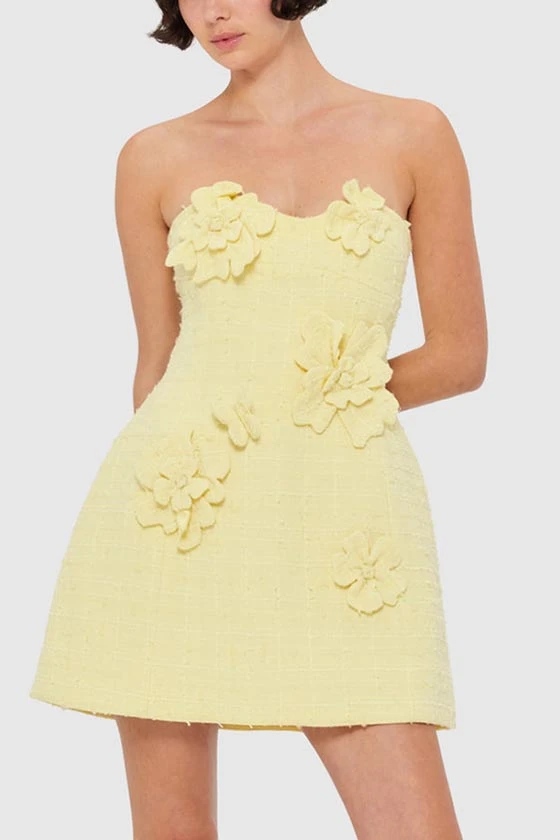 Floral Embellished Strapless Mini Dress