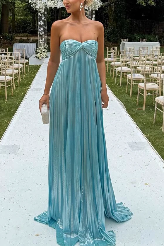 Strapless Pleated Maxi Dress