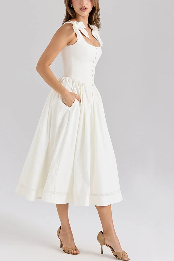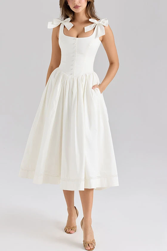 Sleeveless Dress with Bow Tie Shoulder Straps