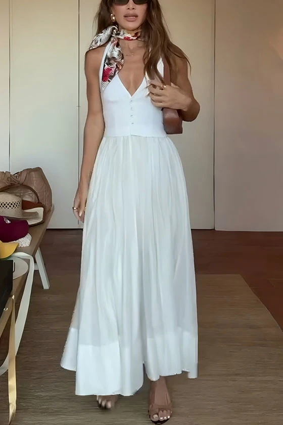 Backless Halter Deep V-Neck Sleeveless Maxi Dress