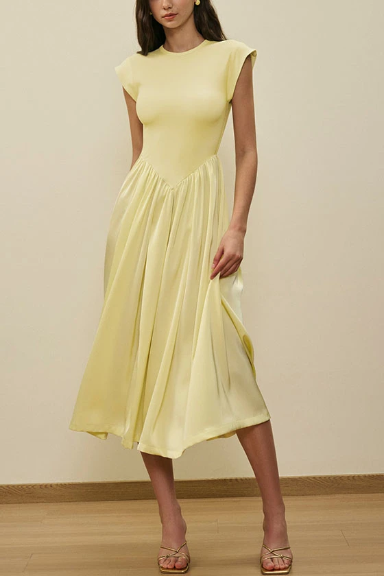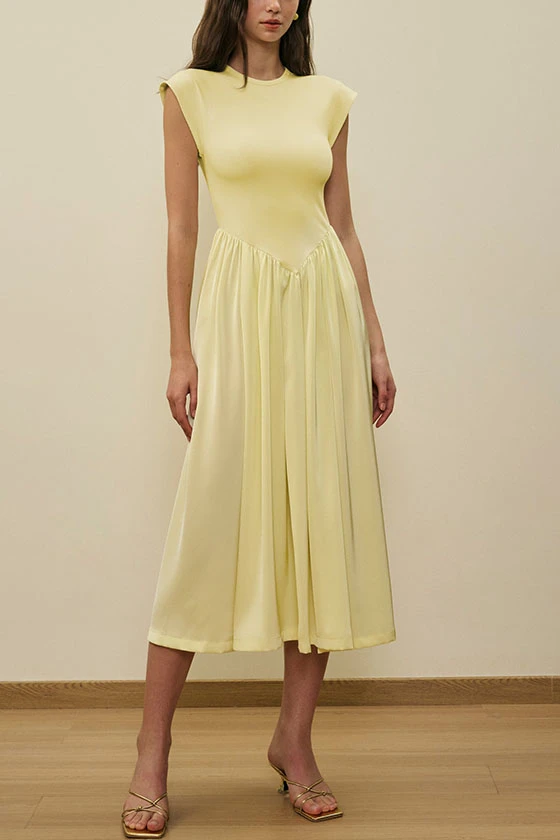 Sleeveless Pleated Dress with a Round Neck