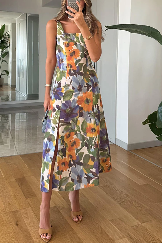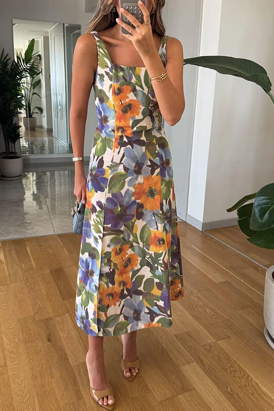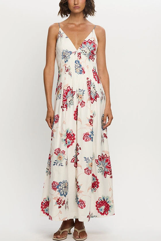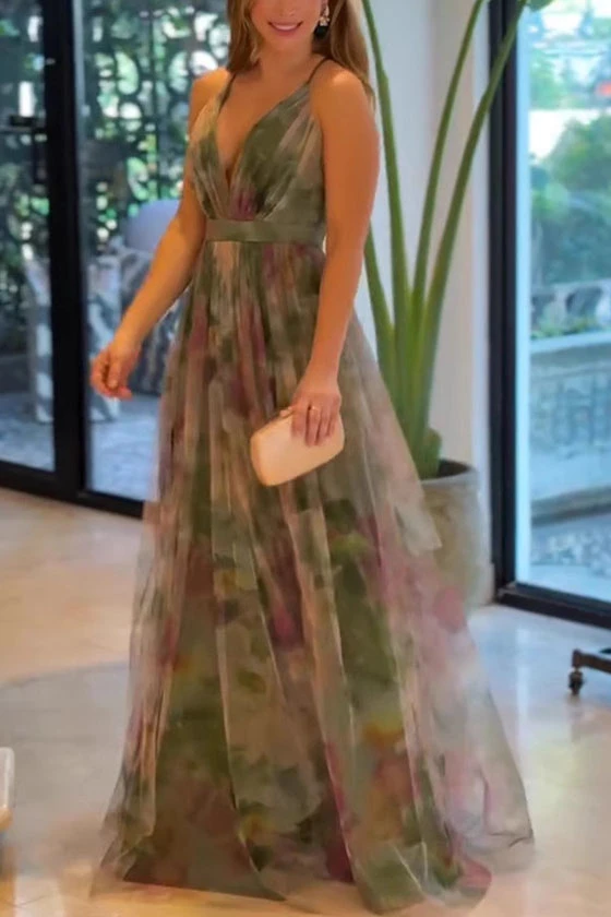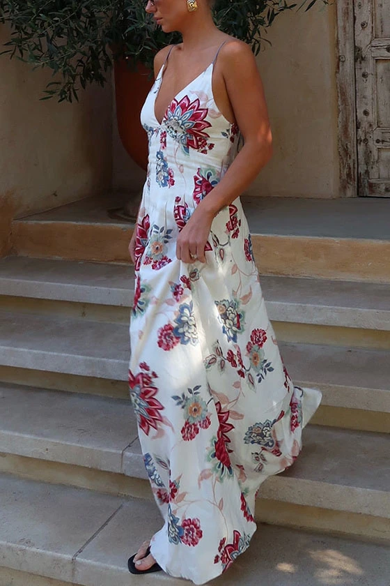 Floral Print Spaghetti Strap V-neck Maxi Dress