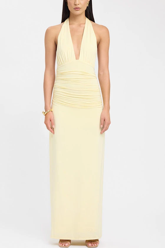 Elegant Halter Neck Floral Pleated Maxi Dress