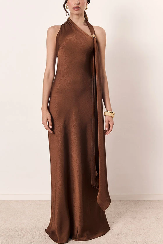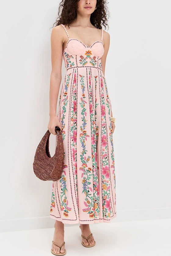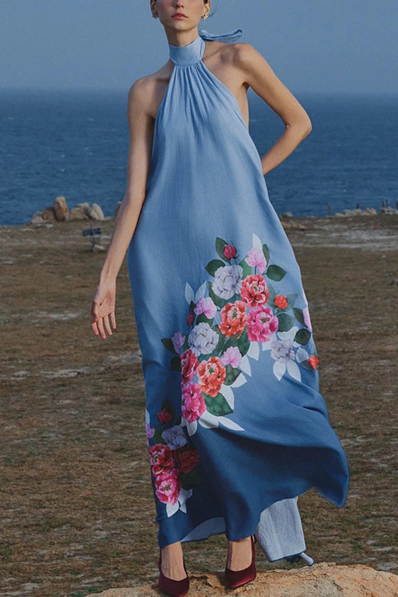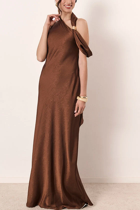 Chic Strapless Maxi Dress with Side Slit and Flower Decor