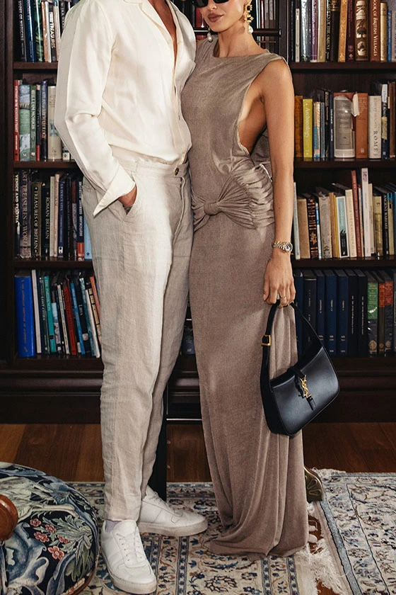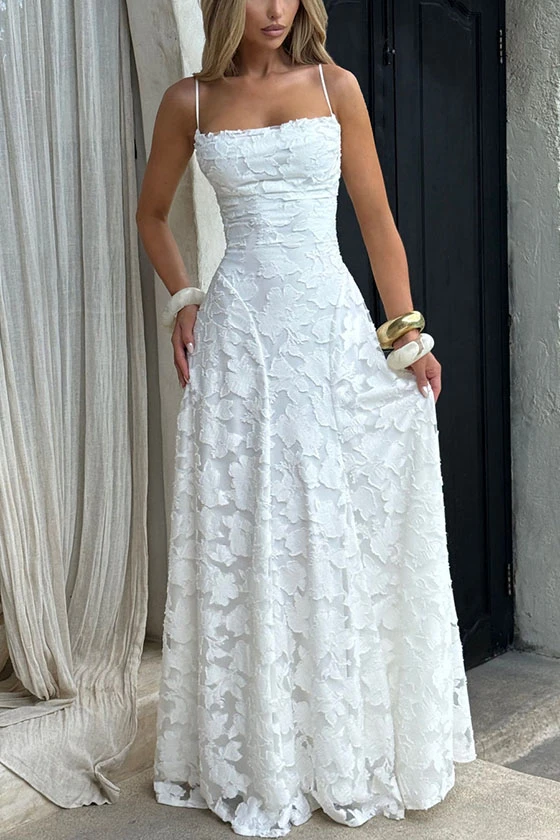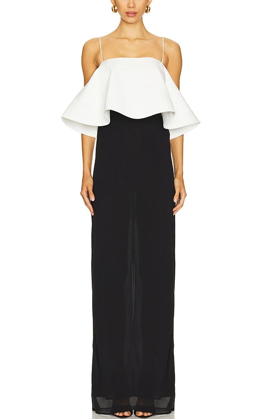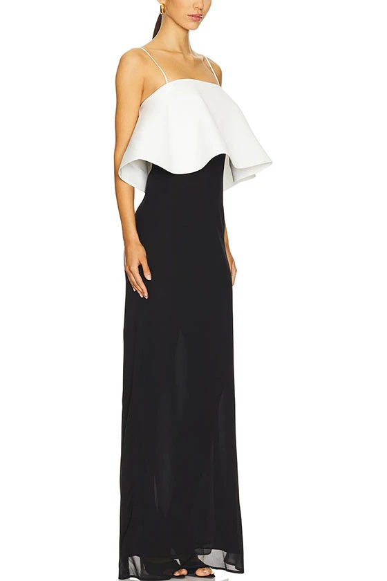 Chic White Ruffled Strappy Top Black Maxi Dress
