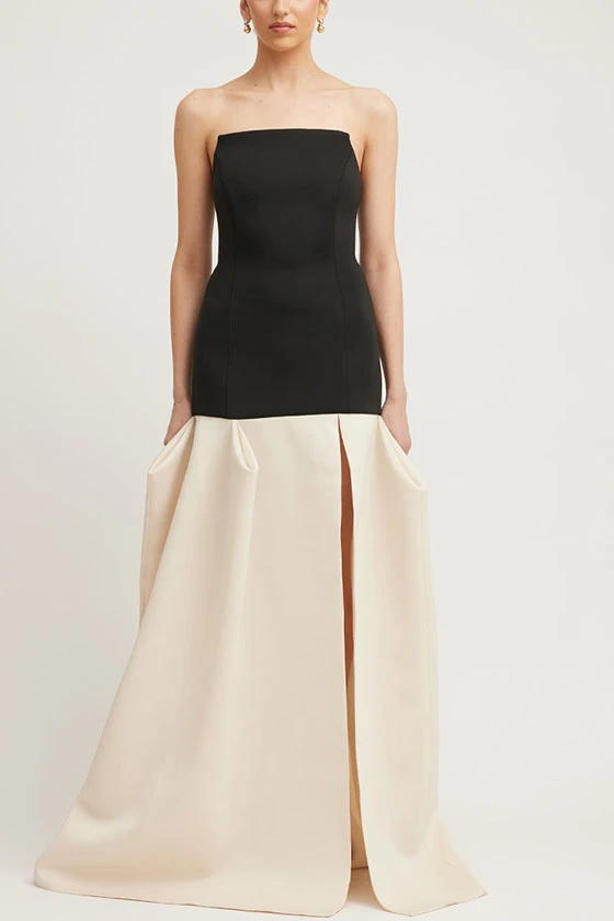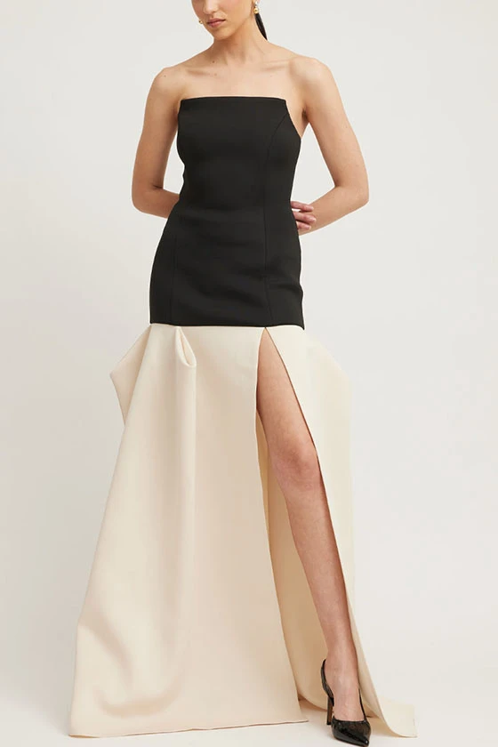 Strapless Bodycon Maxi Dress with Sheer Panel