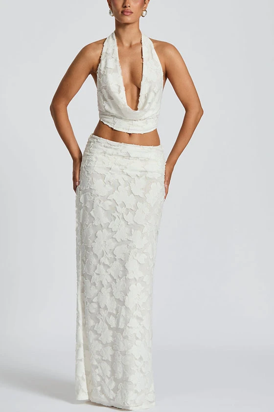 Halter Neck Lace Crop Top and Mermaid Skirt Set
