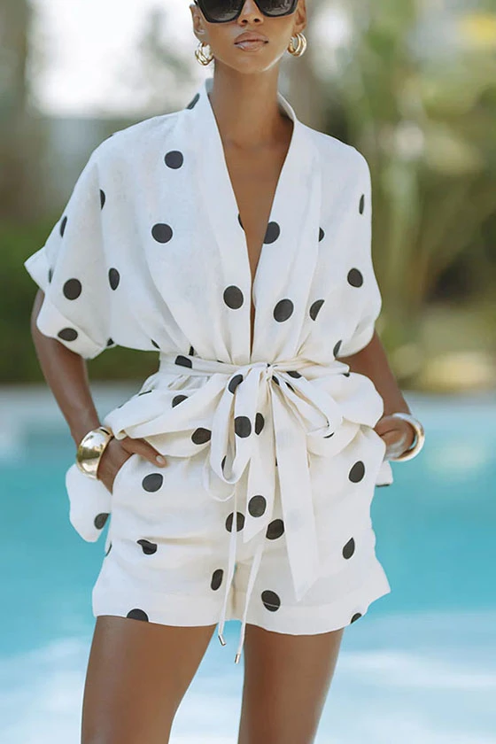 Polka Dot Short Sleeve Top and Polka Dot Shorts Set