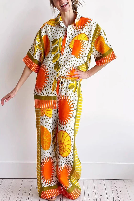 Printed Two-Piece Set with Short Sleeve Top and Pants