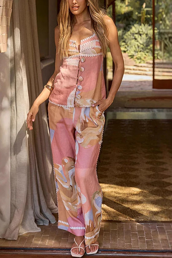 Printed Sleeveless Tank Top and Printed Pants Set