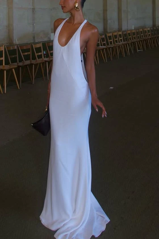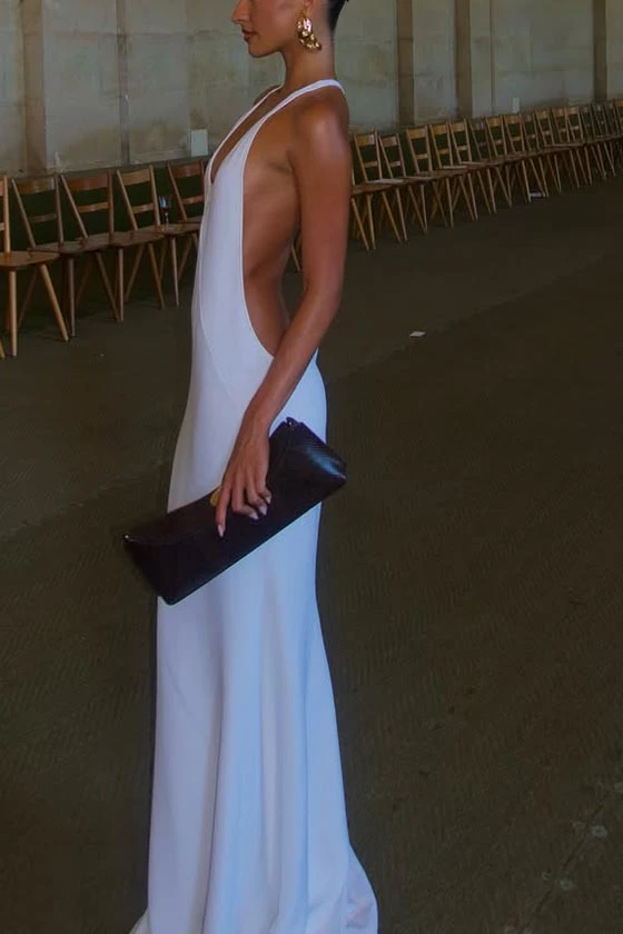 Deep V Neck Backless Maxi Dress