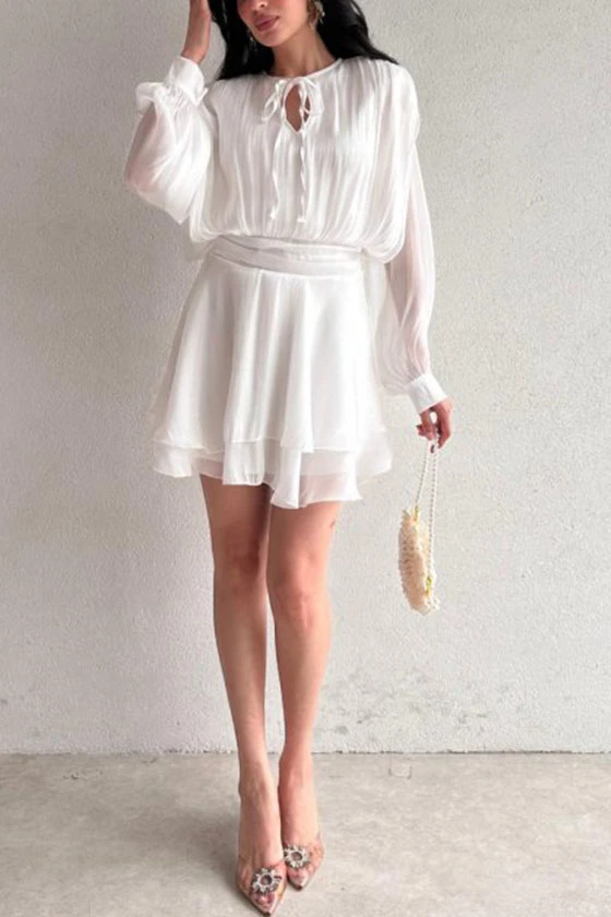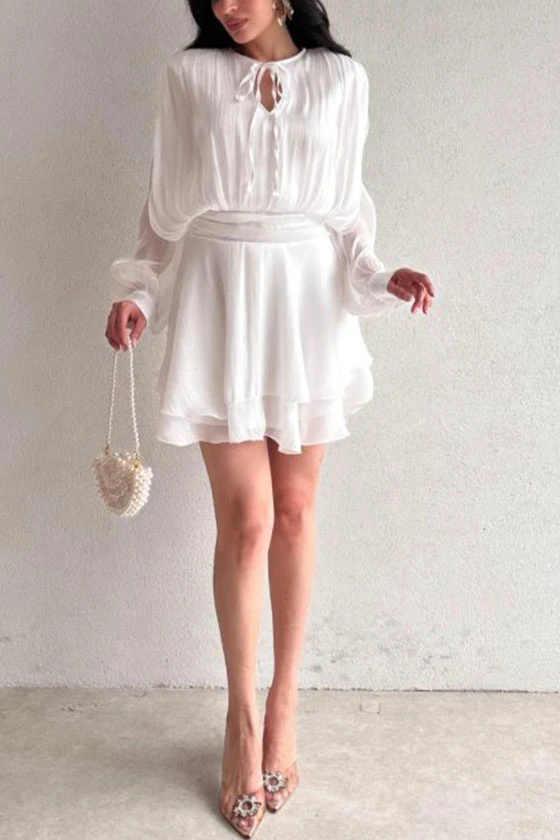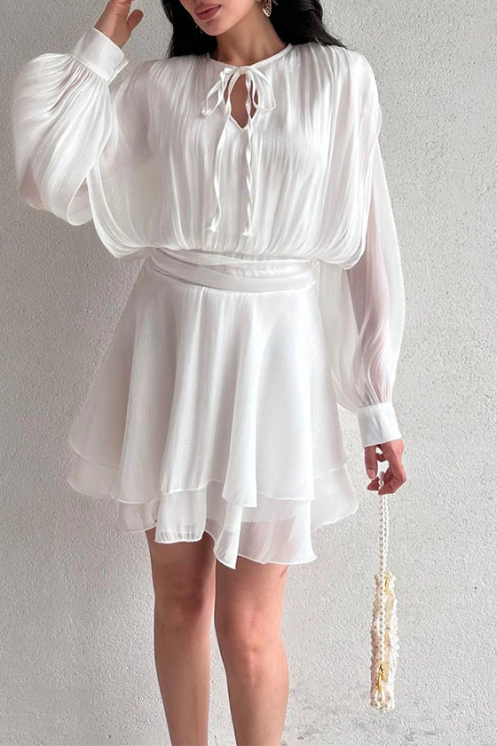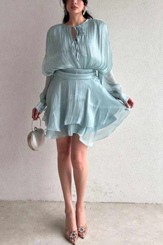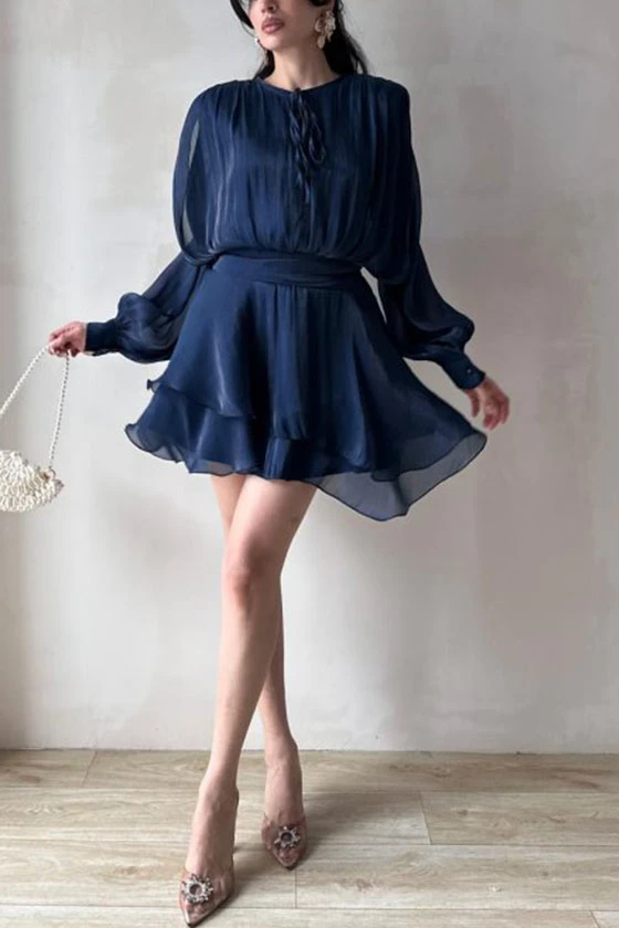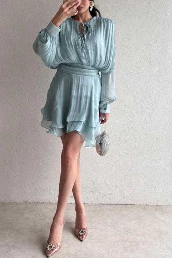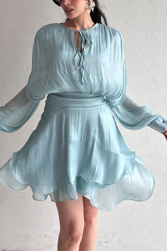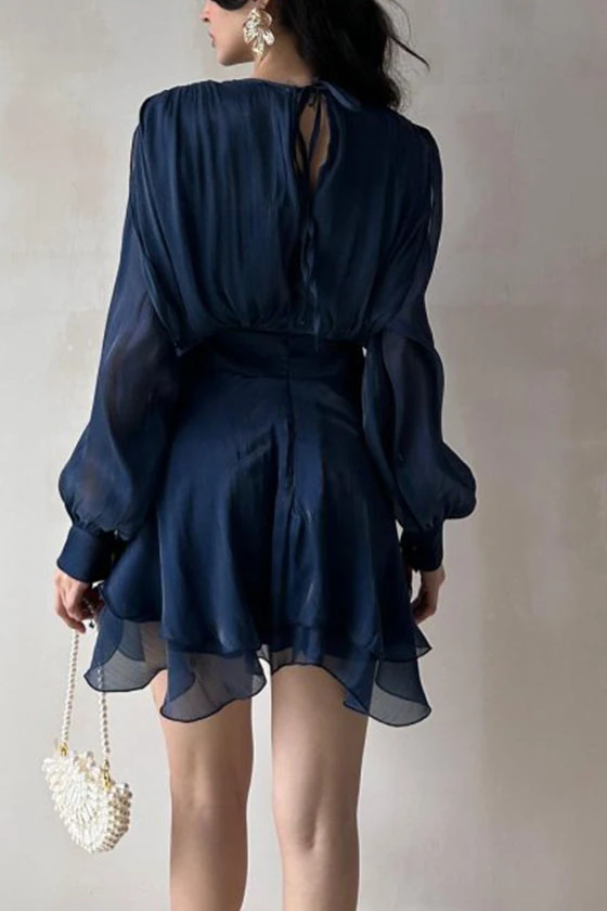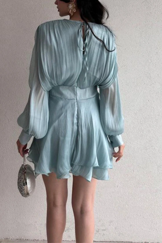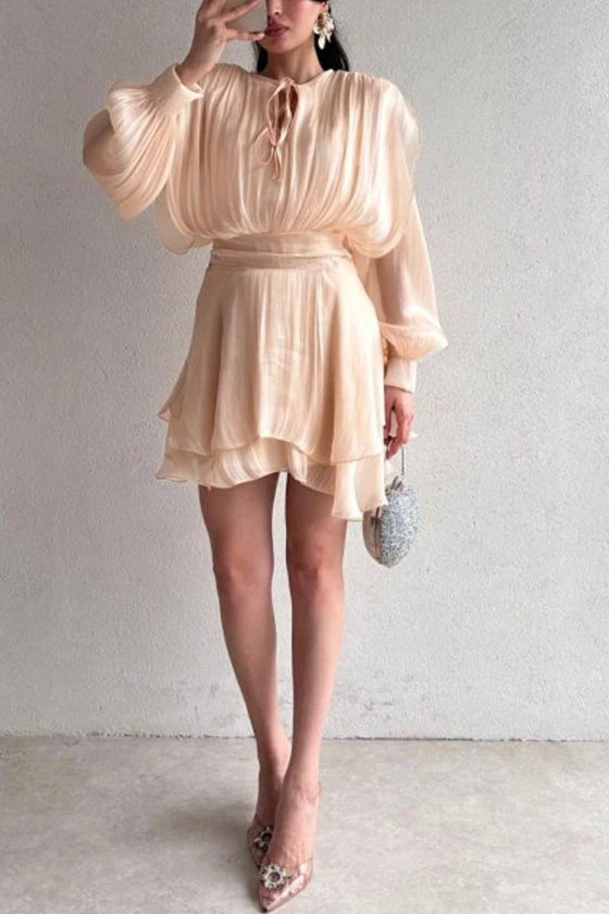 Satin Mini Dress with Lantern Sleeves