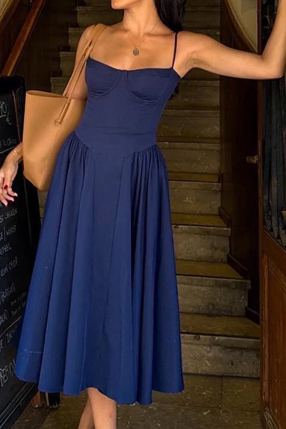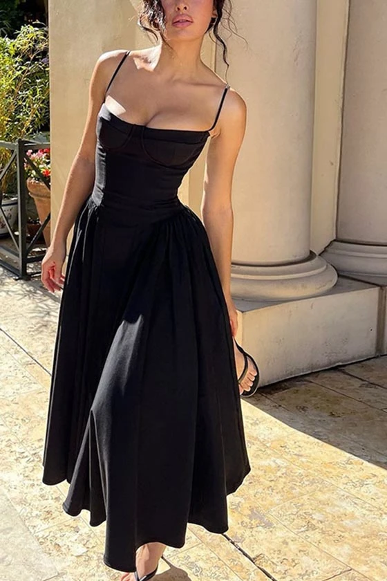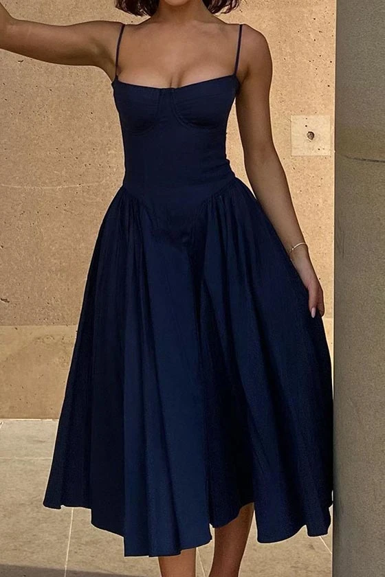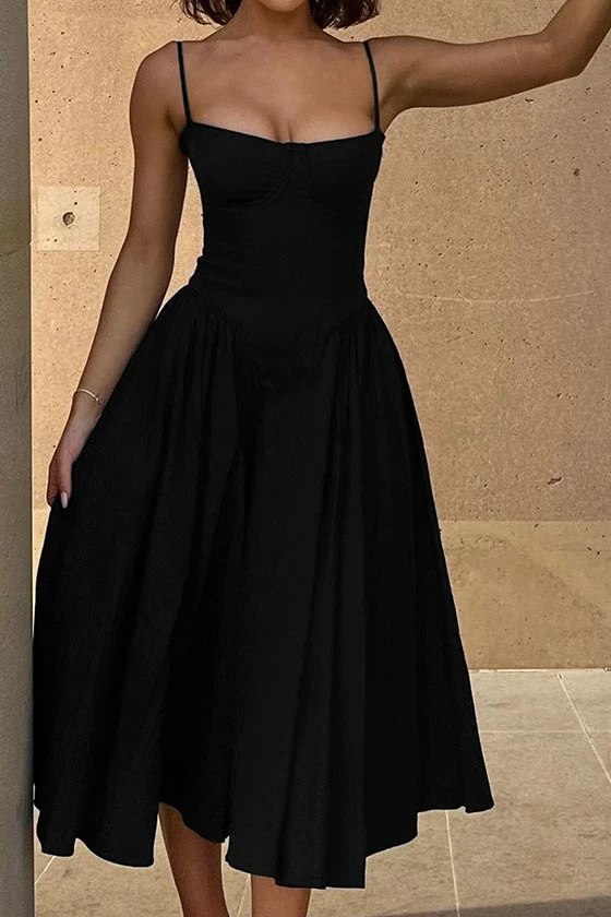 Spaghetti Strap Bustier Flared Dress