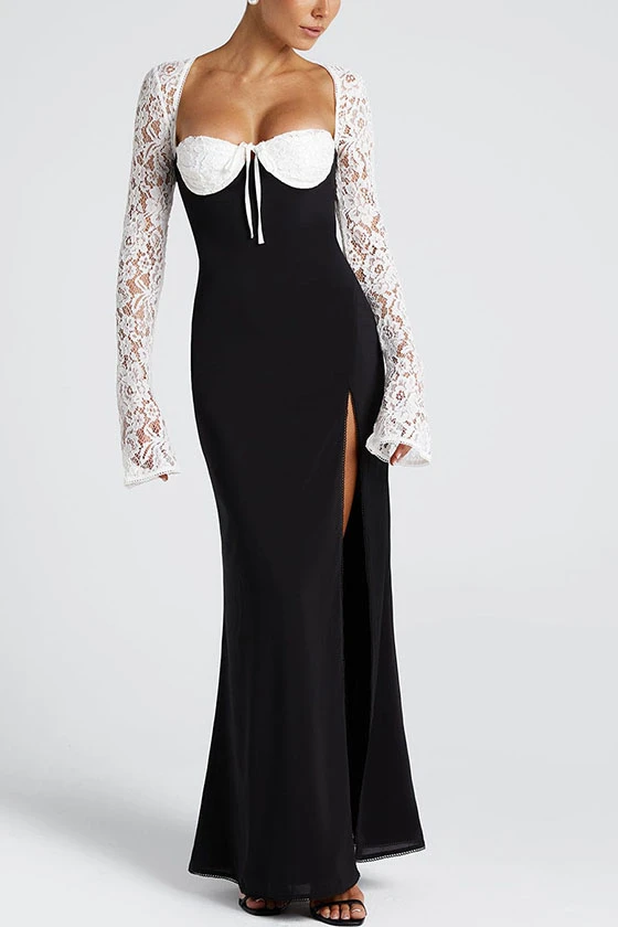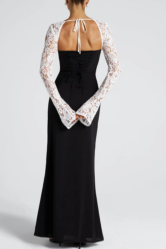 Black Maxi Dress with White Lace Contrast