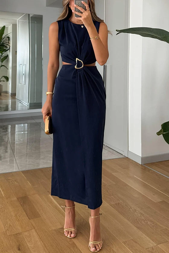 Chic Sleeveless Pink Cut Out Maxi Dress
