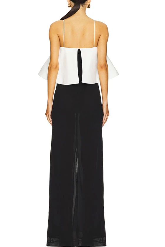 Chic White Ruffled Strappy Top Black Maxi Dress
