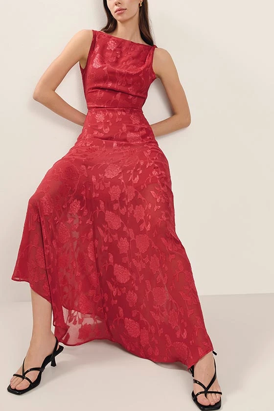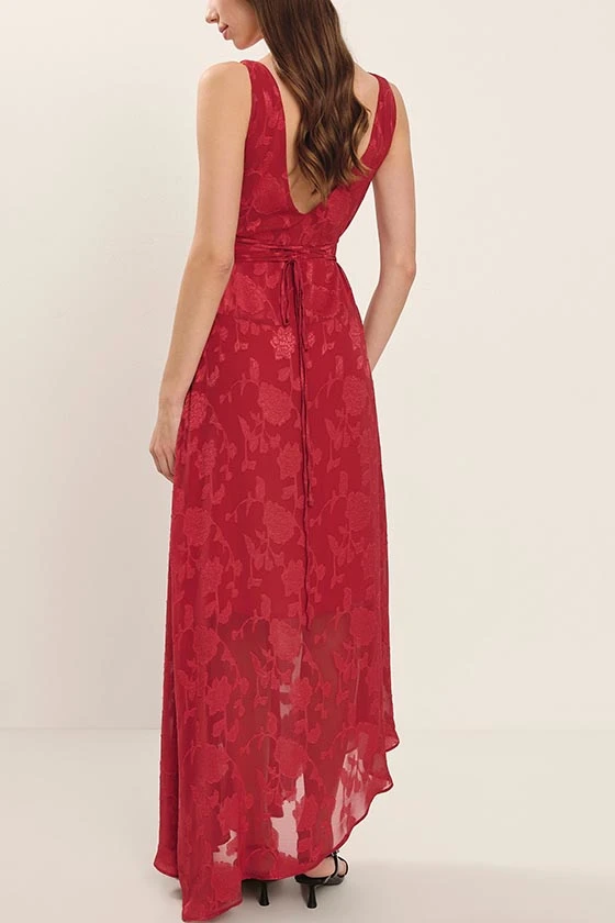 Elegant Red Floral Sleeveless High