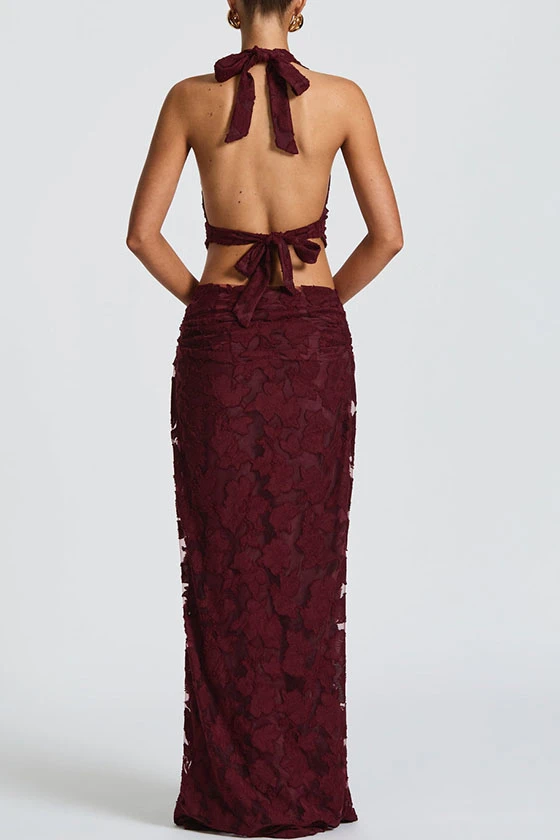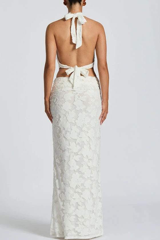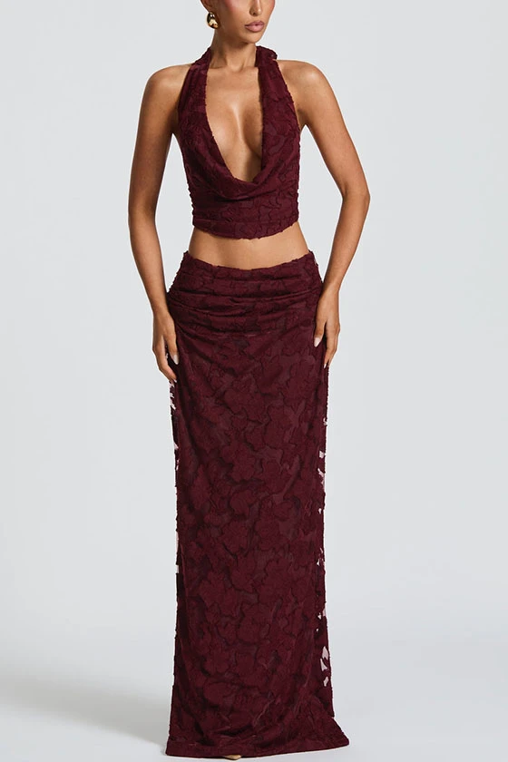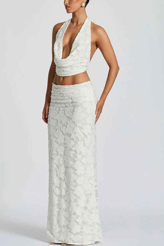 Halter Neck Lace Crop Top and Mermaid Skirt Set