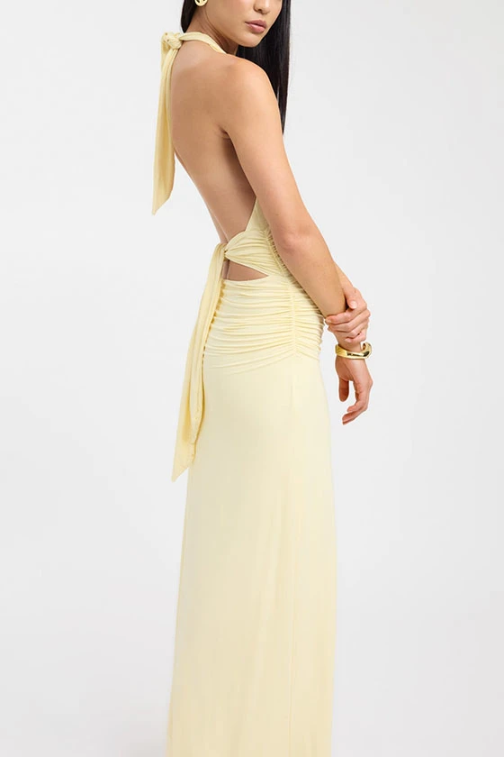 Halter Neck Ruched Maxi Dress