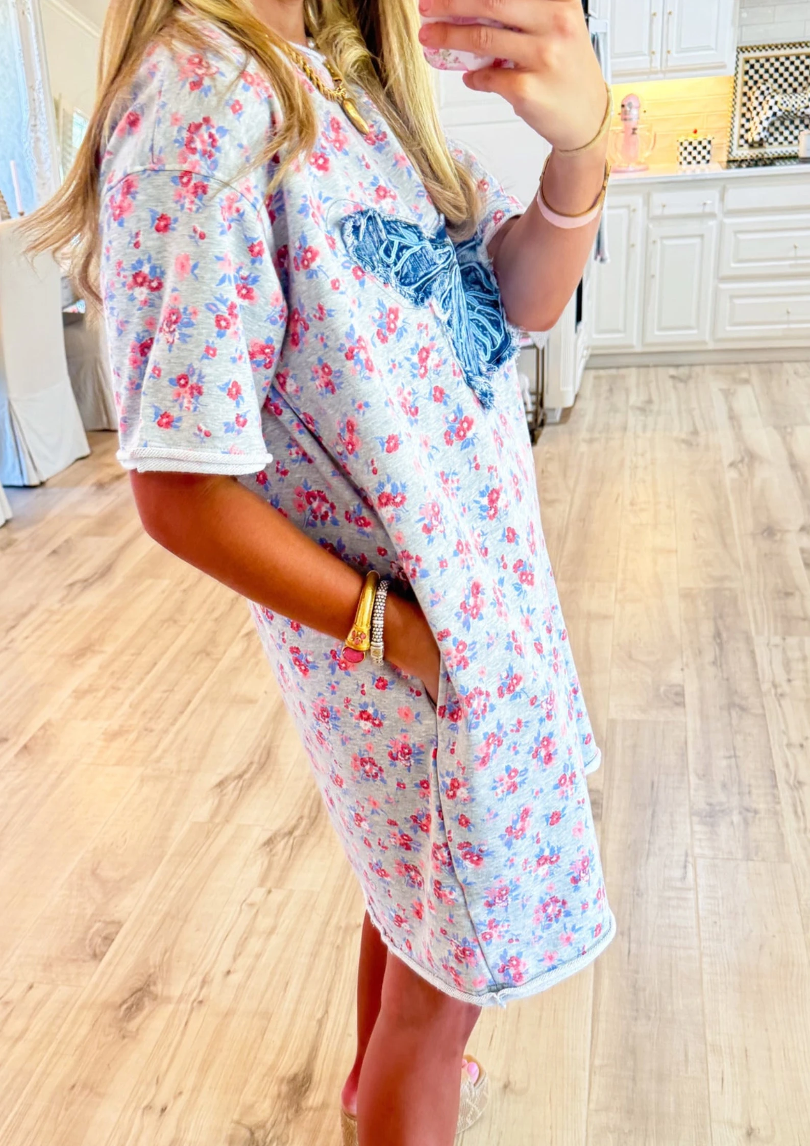 Heather Grey Floral Butterfly Patch Dress