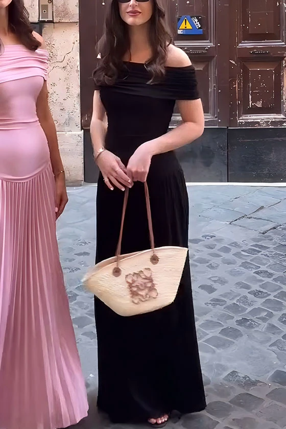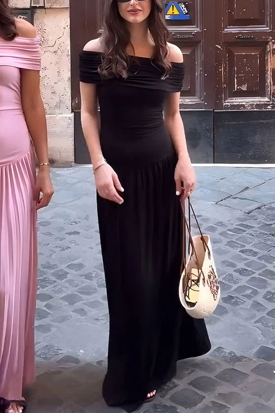 Off-Shoulder Pleated Maxi Dresses