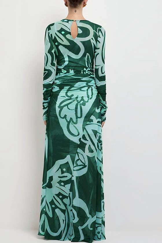 Olive Green Mesh Sheer Dress
