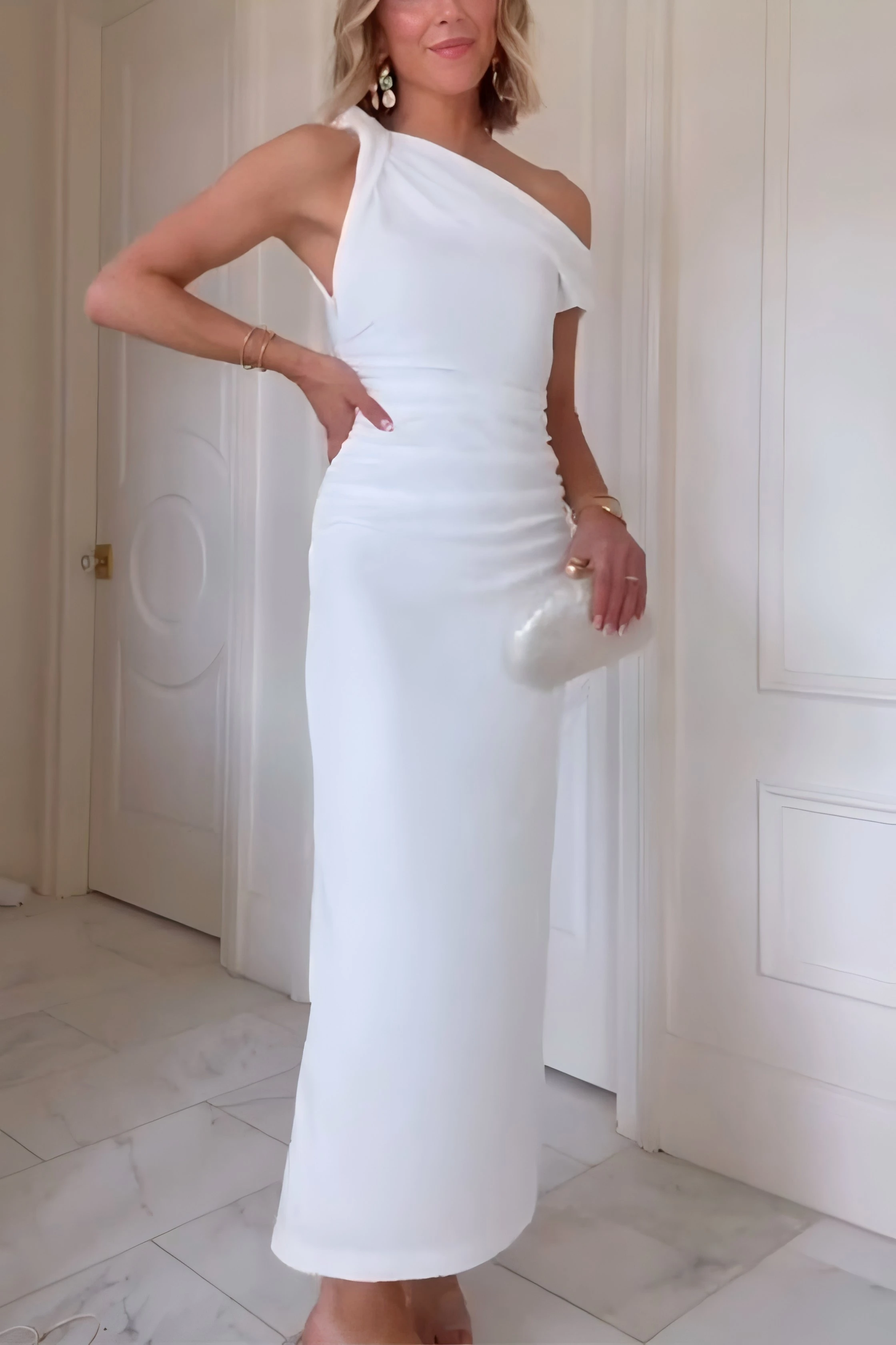 One-Shoulder Elegant White Bodycon Maxi Dress