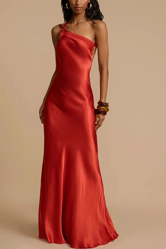 One Shoulder Satin Mermaid Maxi Dress