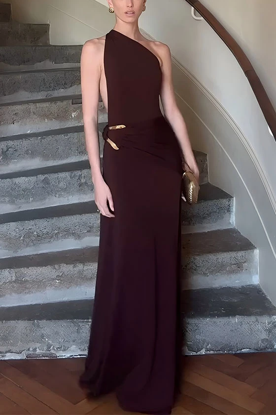 One-Shoulder Sleeveless Evening Gown