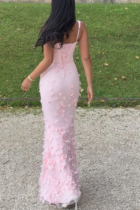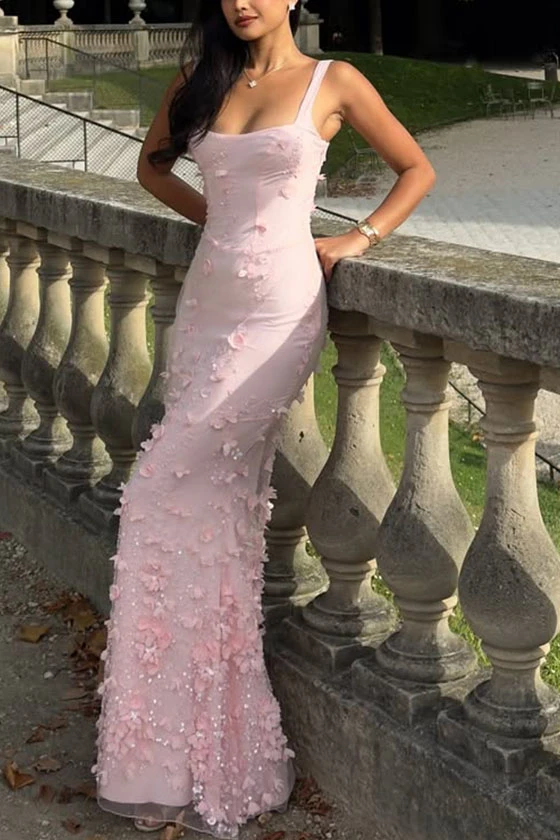 Pink Square Neck Mermaid Gown