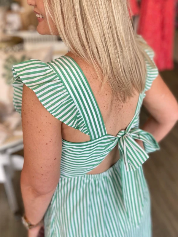 Ruffle Sleeve Striped Tie Maxi Dress