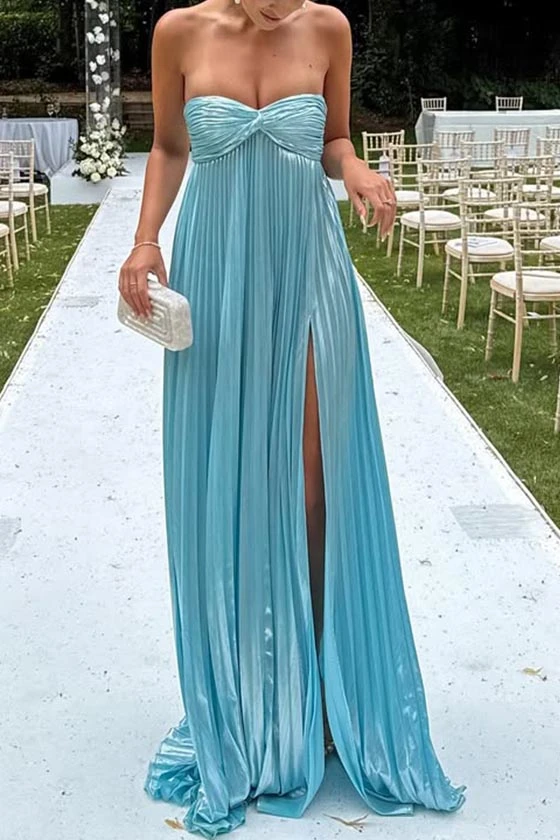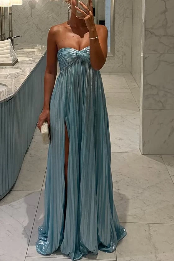 Strapless Pleated Maxi Dress