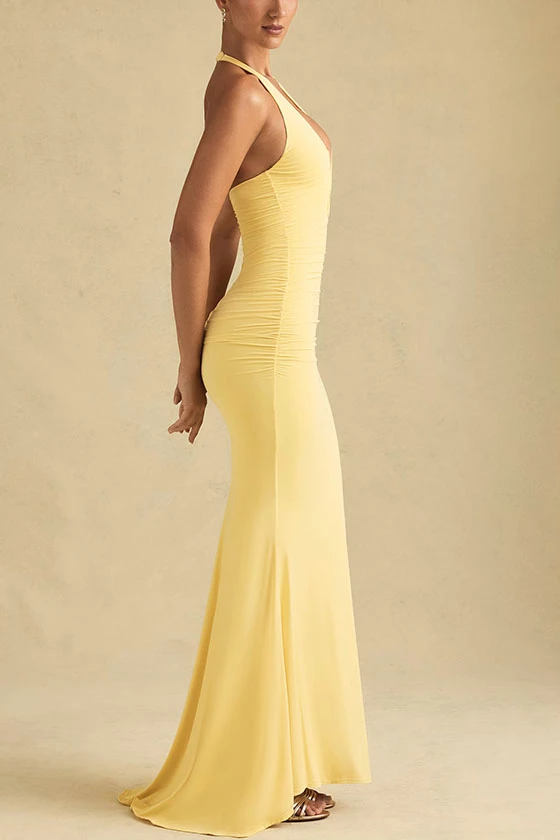 Stylish Halter neck Ruched Mermaid Maxi Dress