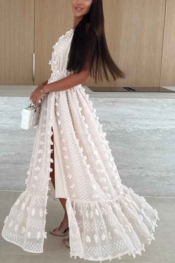 Embroidered Sleeveless Halter Dress with Side Slit