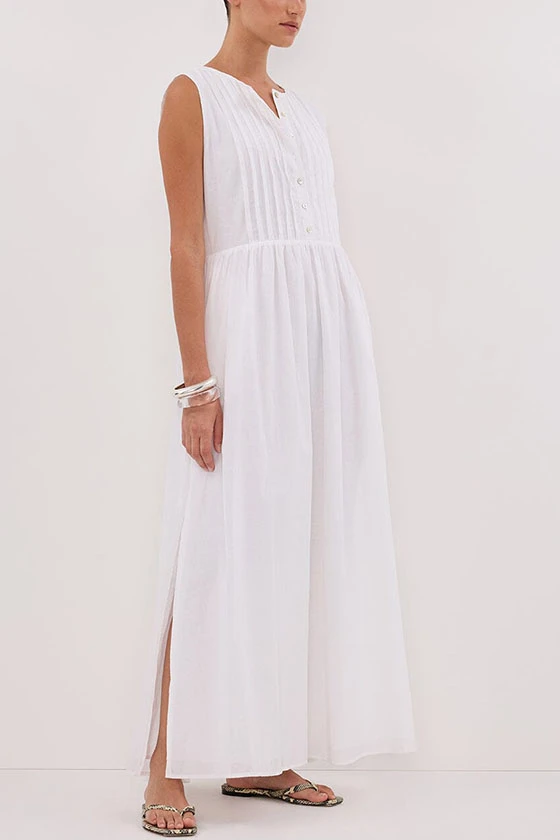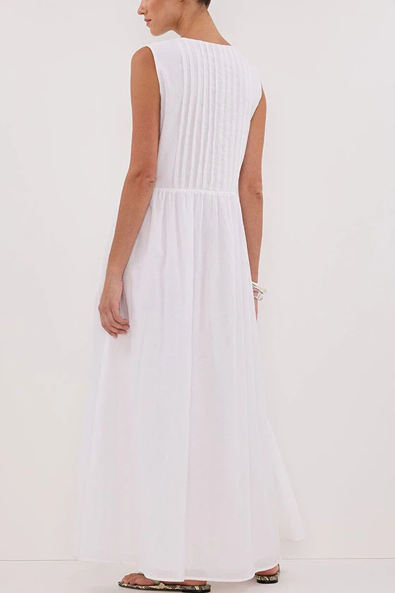 Sleeveless Pintuck Button-Front Cotton Maxi Dress